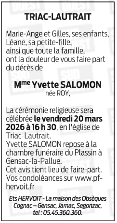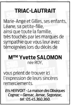 de Madame Yvette SALOMON née ROY