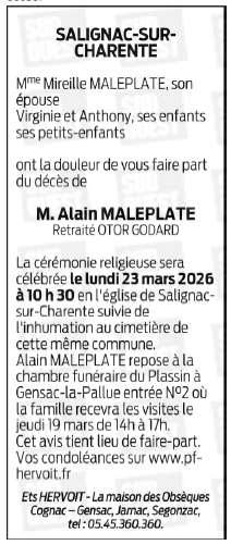 Cet espace « condoléances » est dédié à la mémoire de Monsieur Alain MALEPLATE.