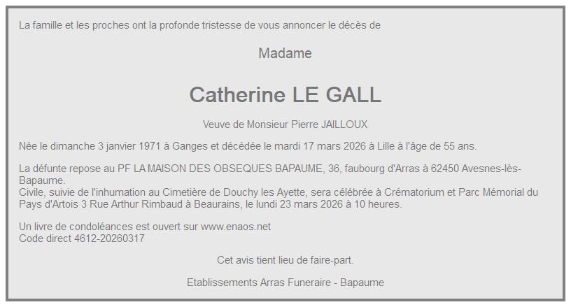 Cet espace « condoléances » est dédié à la mémoire de Madame Catherine JAILLOUX née LE GALL.