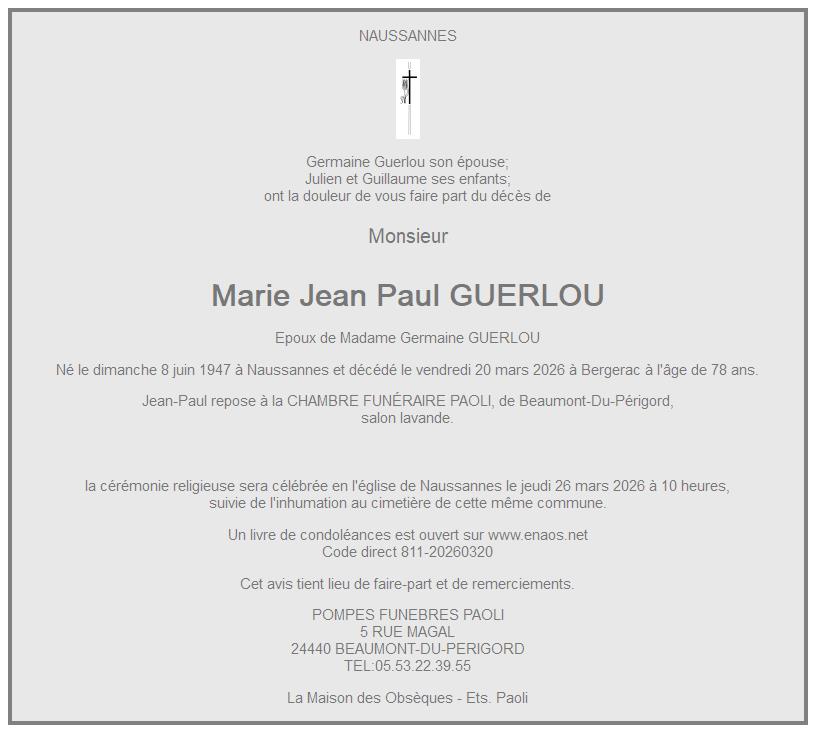 de Monsieur Marie Jean Paul GUERLOU