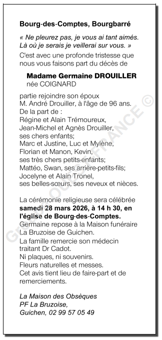 de Madame Germaine DROUILLER née COIGNARD