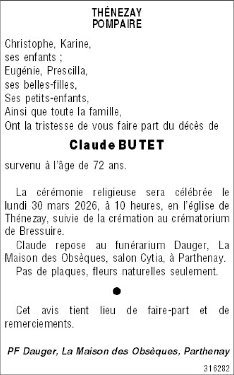 Cet espace « condoléances » est dédié à la mémoire de Monsieur Claude BUTET.