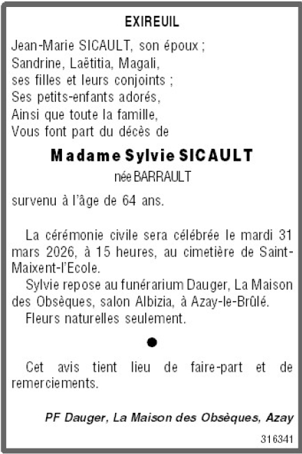 de Madame Sylvie SICAULT née BARRAULT