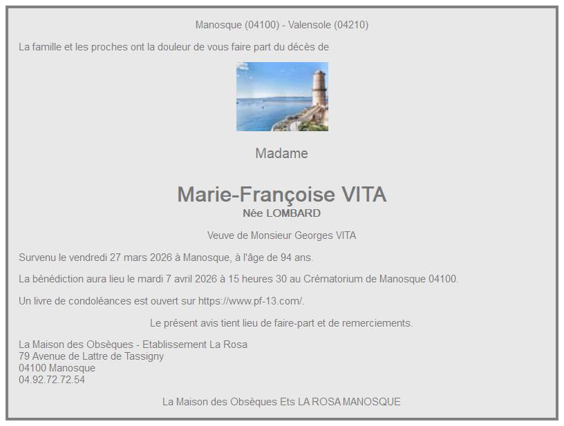 de Madame Marie-Françoise VITA née LOMBARD