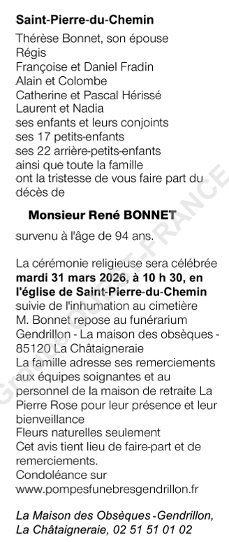 Cet espace « condoléances » est dédié à la mémoire de Monsieur René BONNET.