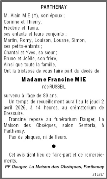de Madame Francine MIE née RUSSEIL