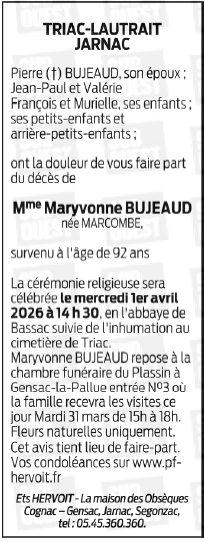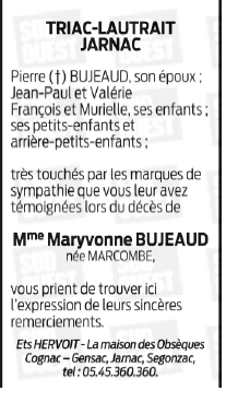 de Madame Maryvonne BUJEAUD née MARCOMBE