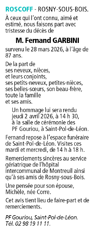 de Monsieur Fernand GARBINI