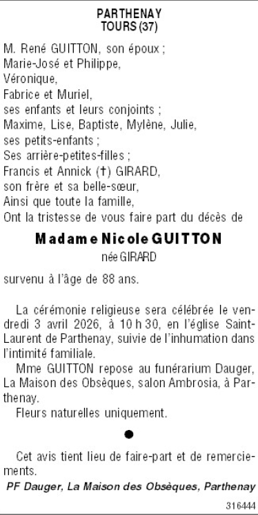 de Madame Nicole GUITTON née GIRARD