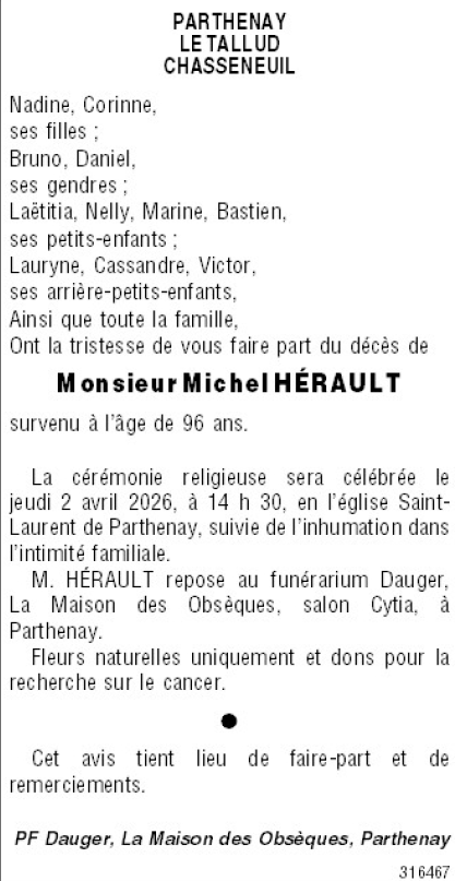 Cet espace « condoléances » est dédié à la mémoire de Monsieur Michel HÉRAULT.