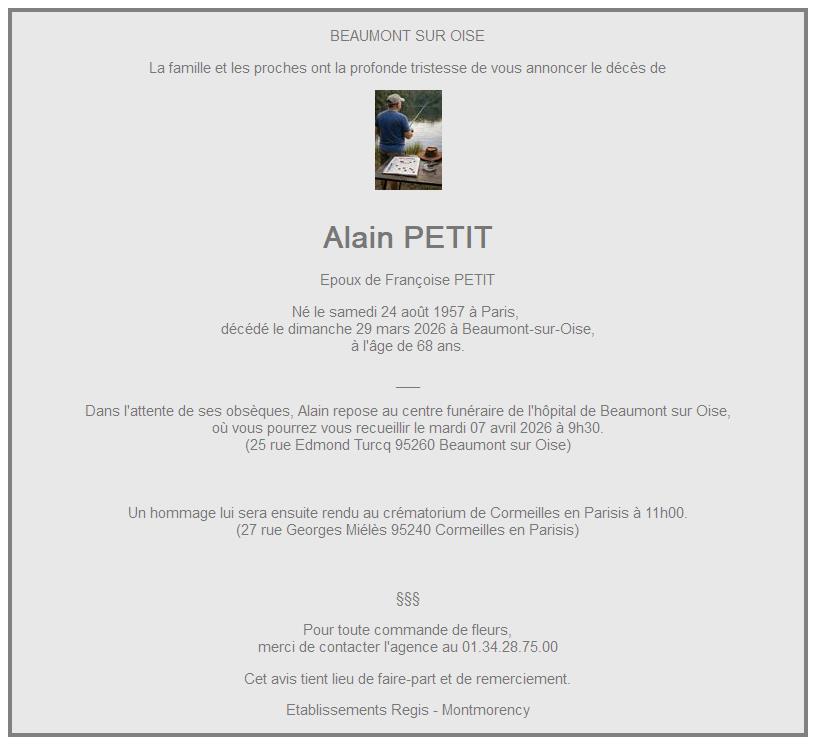 Cet espace « condoléances » est dédié à la mémoire de Monsieur Alain PETIT.