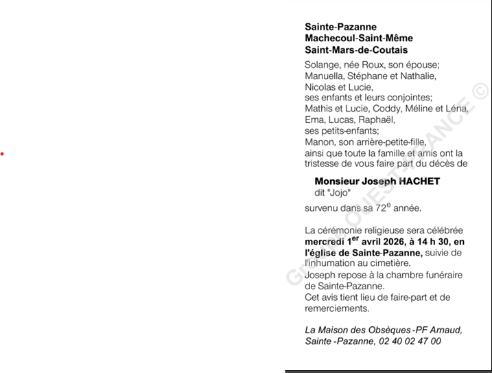 Cet espace « condoléances » est dédié à la mémoire de Monsieur Joseph HACHET.