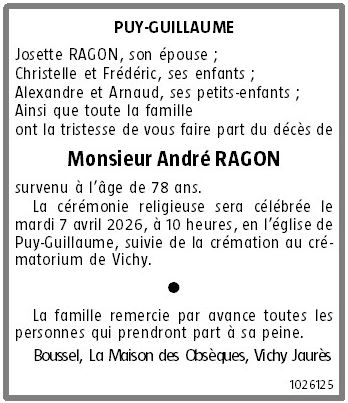 Cet espace « condoléances » est dédié à la mémoire de Monsieur André RAGON.