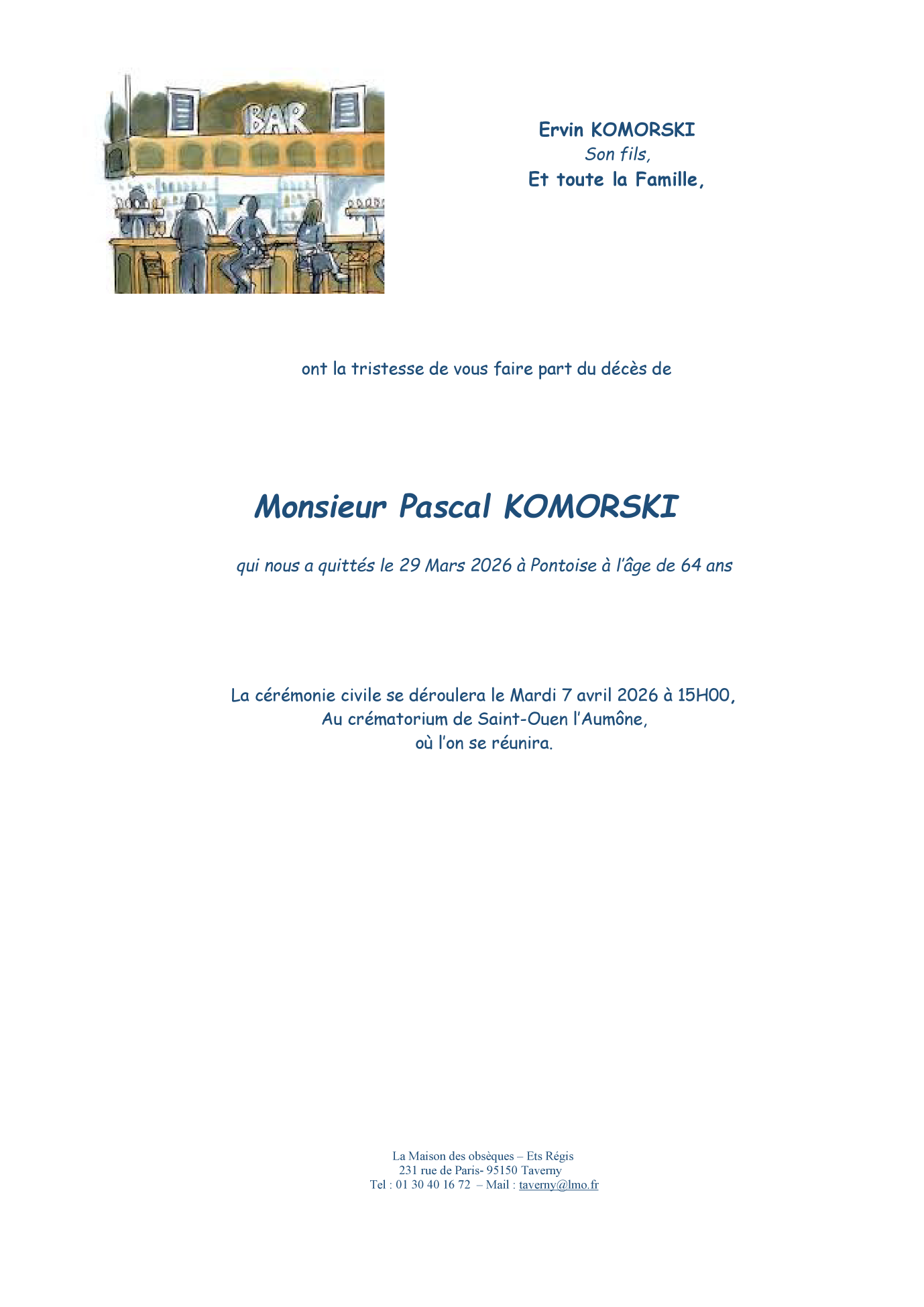 Cet espace « condoléances » est dédié à la mémoire de Monsieur Pascal KOMORSKI.