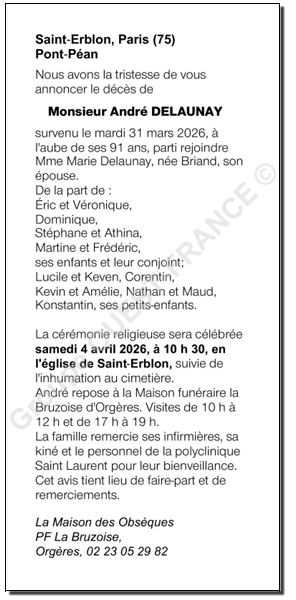 Cet espace « condoléances » est dédié à la mémoire de Monsieur André DELAUNAY.