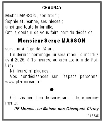 Cet espace « condoléances » est dédié à la mémoire de Monsieur Serge MASSON.