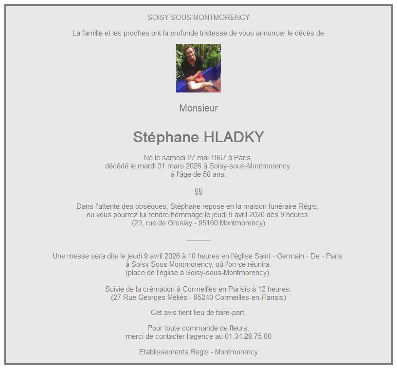 Cet espace « condoléances » est dédié à la mémoire de Monsieur Stéphane HLADKY.