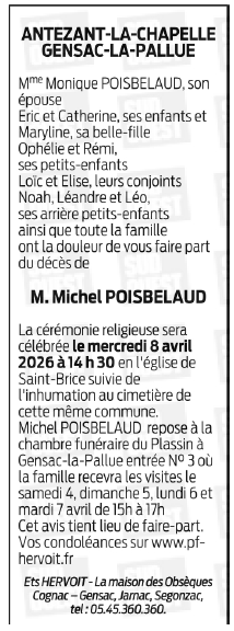 Cet espace « condoléances » est dédié à la mémoire de Monsieur Michel POISBELAUD.