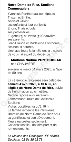 de Madame Nadine PONTOHOREAU née CHAUVIERE