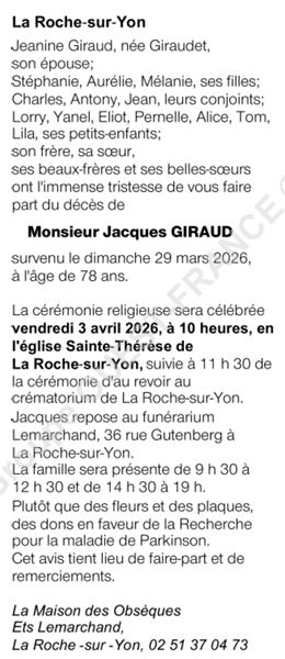 Cet espace « condoléances » est dédié à la mémoire de Monsieur Jacques GIRAUD.