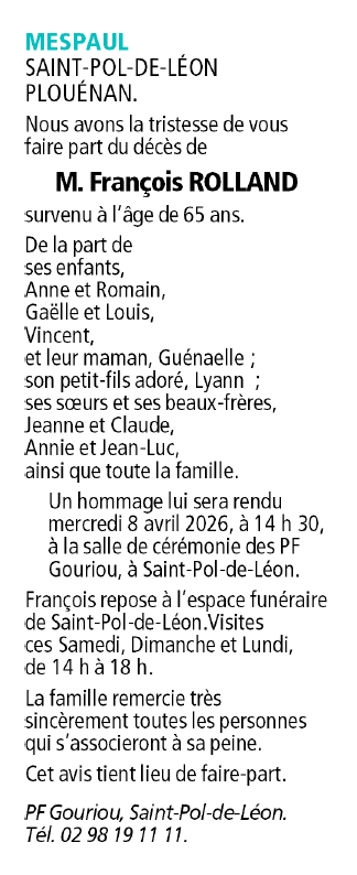 Cet espace « condoléances » est dédié à la mémoire de Monsieur François ROLLAND.