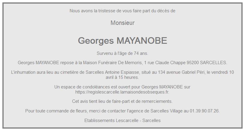 Cet espace « condoléances » est dédié à la mémoire de Monsieur Georges MAYANOBE.