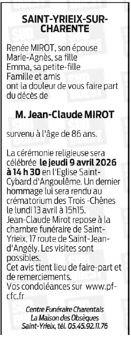 Cet espace « condoléances » est dédié à la mémoire de Monsieur Jean MIROT.