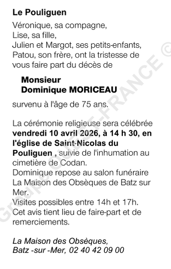 Cet espace « condoléances » est dédié à la mémoire de Monsieur Dominique MORICEAU.