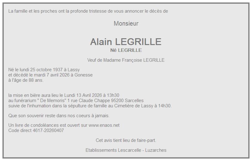 de Monsieur Alain LEGRILLE