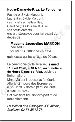de Madame Jacqueline MARCONI née ANCEL