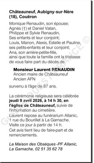 Cet espace « condoléances » est dédié à la mémoire de Monsieur Laurent RENAUDIN.