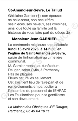 Cet espace « condoléances » est dédié à la mémoire de Monsieur Jean GARNIER.