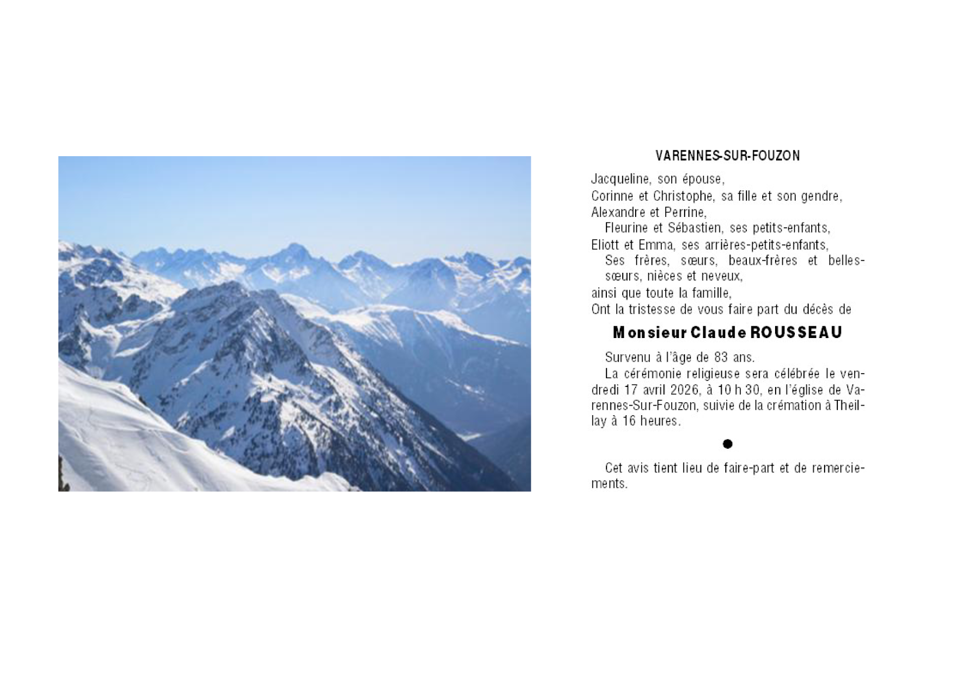 Cet espace « condoléances » est dédié à la mémoire de Monsieur Claude ROUSSEAU.