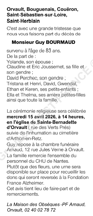 Cet espace « condoléances » est dédié à la mémoire de Monsieur Guy BOURMAUD.