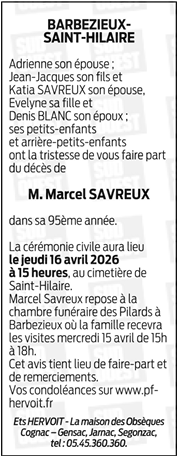 Cet espace « condoléances » est dédié à la mémoire de Monsieur Marcel SAVREUX.
