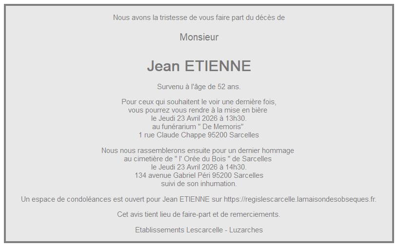 Cet espace « condoléances » est dédié à la mémoire de Monsieur Jean ETIENNE.