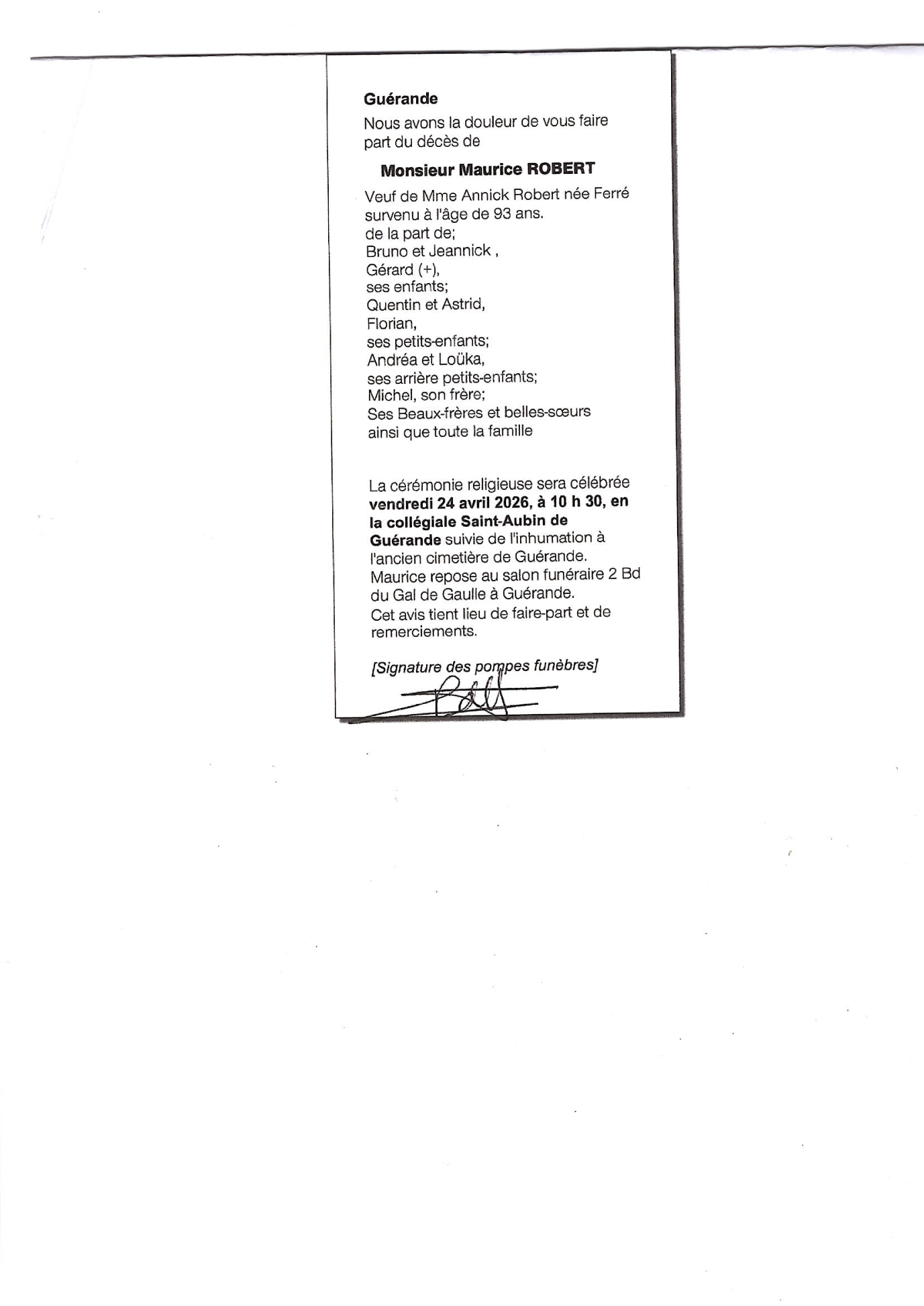 Cet espace « condoléances » est dédié à la mémoire de Monsieur Maurice ROBERT.