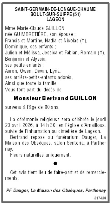 Décédé à Faye-l'Abbesse (79350) le dimanche 19 avril 2026