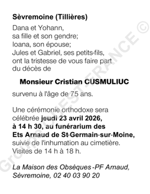 Cet espace « condoléances » est dédié à la mémoire de Monsieur Cristian CUSMULIUC.