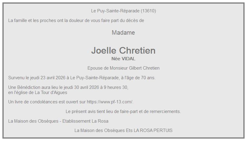 de Madame Joelle Chretien née VIDAL