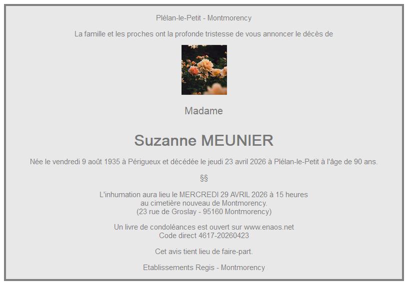 de Madame Suzanne MEUNIER