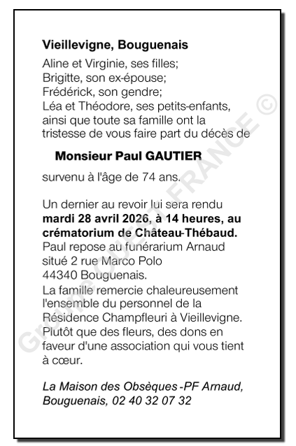 Cet espace « condoléances » est dédié à la mémoire de Monsieur Paul GAUTIER.