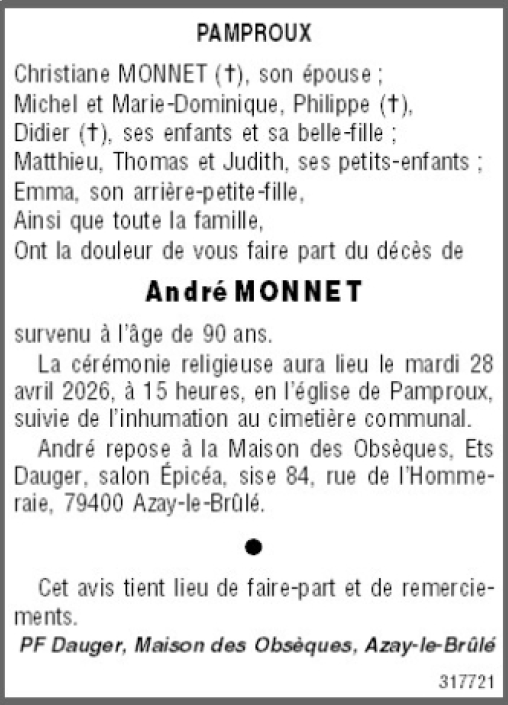 Cet espace « condoléances » est dédié à la mémoire de Monsieur André MONNET.