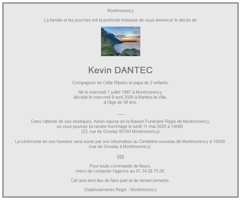 Cet espace « condoléances » est dédié à la mémoire de Monsieur Kevin DANTEC.