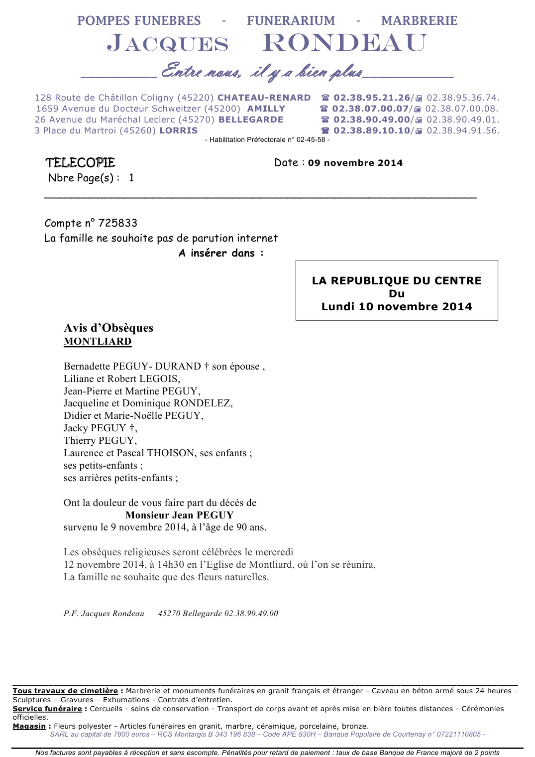 Cet espace « condoléances » est dédié à la mémoire de Monsieur Jean PEGUY.