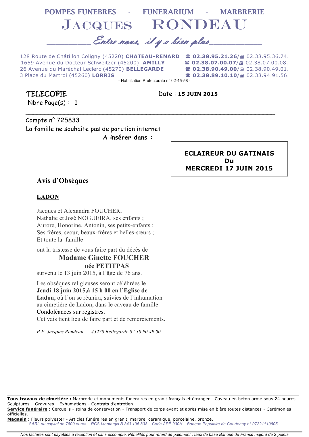de Madame Ginette FOUCHER née PETITPAS
