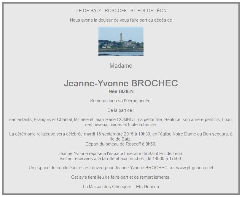 de Madame Jeanne-Yvonne BROCHEC née BIZIEN