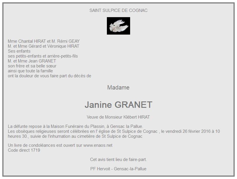 de Madame Janine HIRAT née GRANET