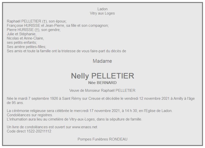 de Madame Nelly PELLETIER née BERNARD