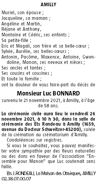 Cet espace « condoléances » est dédié à la mémoire de Monsieur Luc BONNARD.